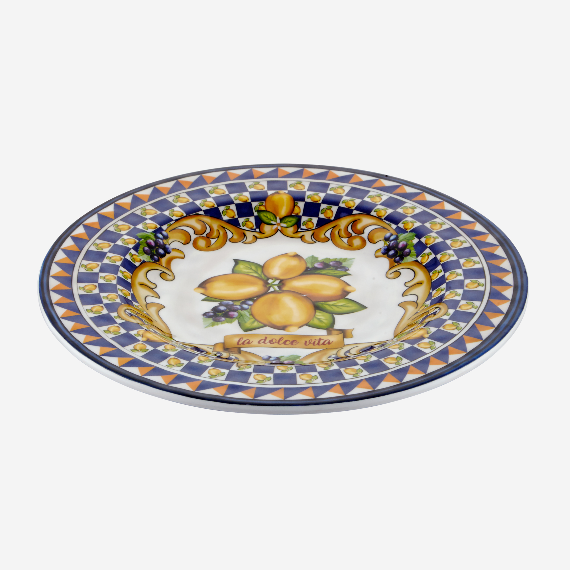 Chiara Alessi Capri limon buketi mavi melamin kahvaltı tabağı uzun süreli kullanım için tasarlanmış, kırılmaya ve çizilmeye karşı ekstra dayanıklıdır ve BPA içermez.