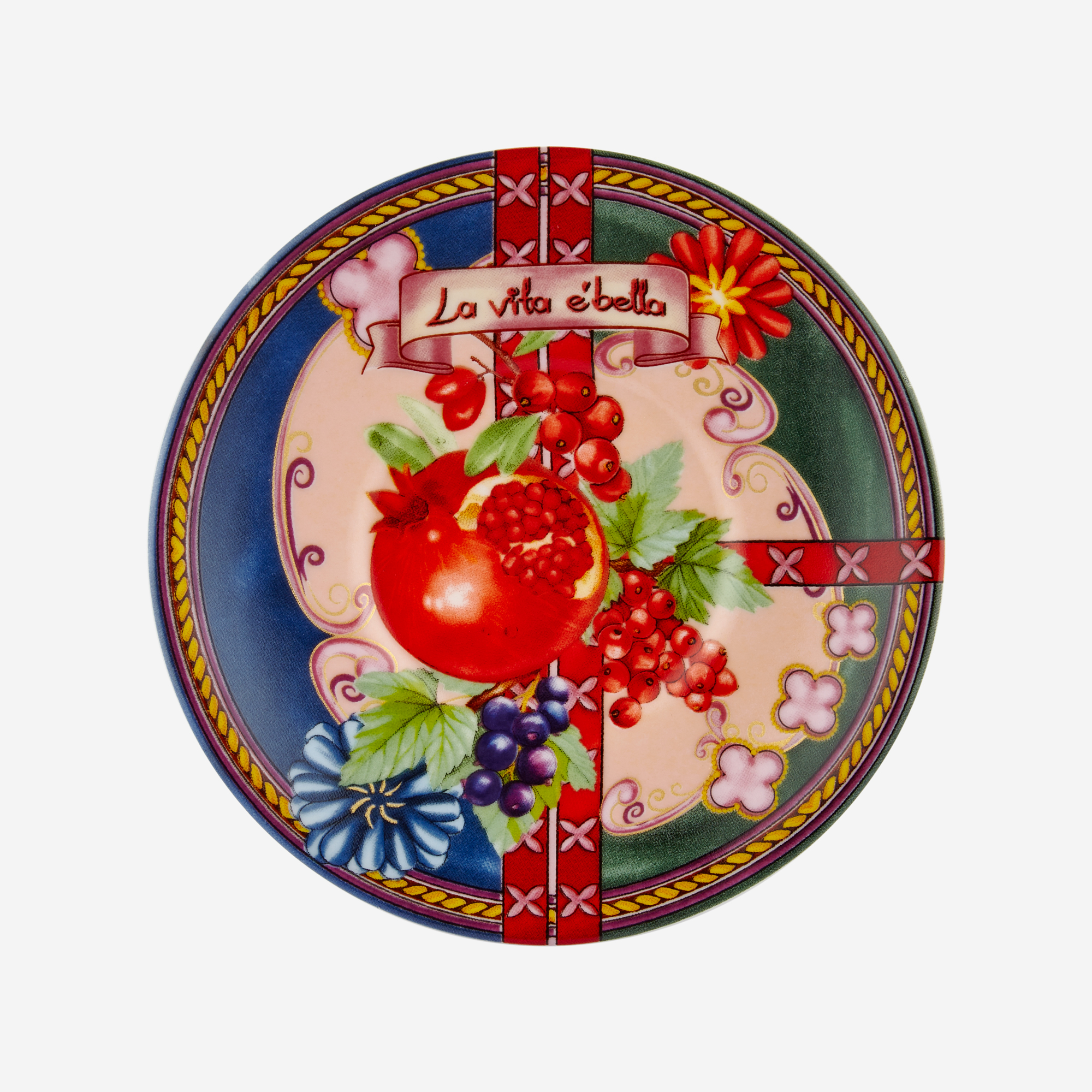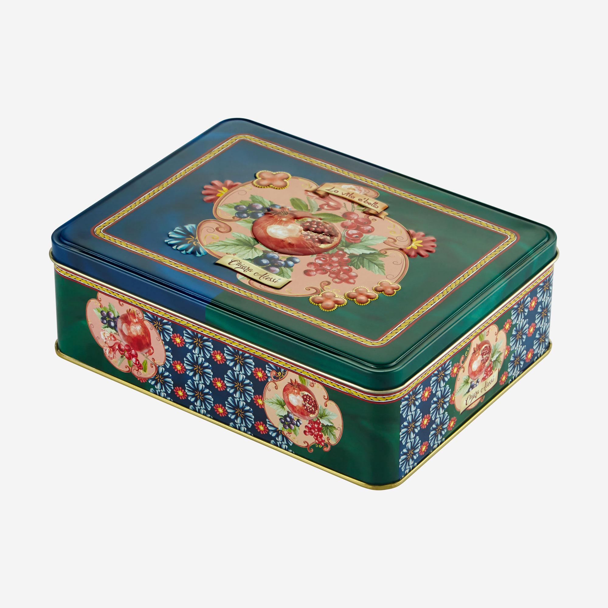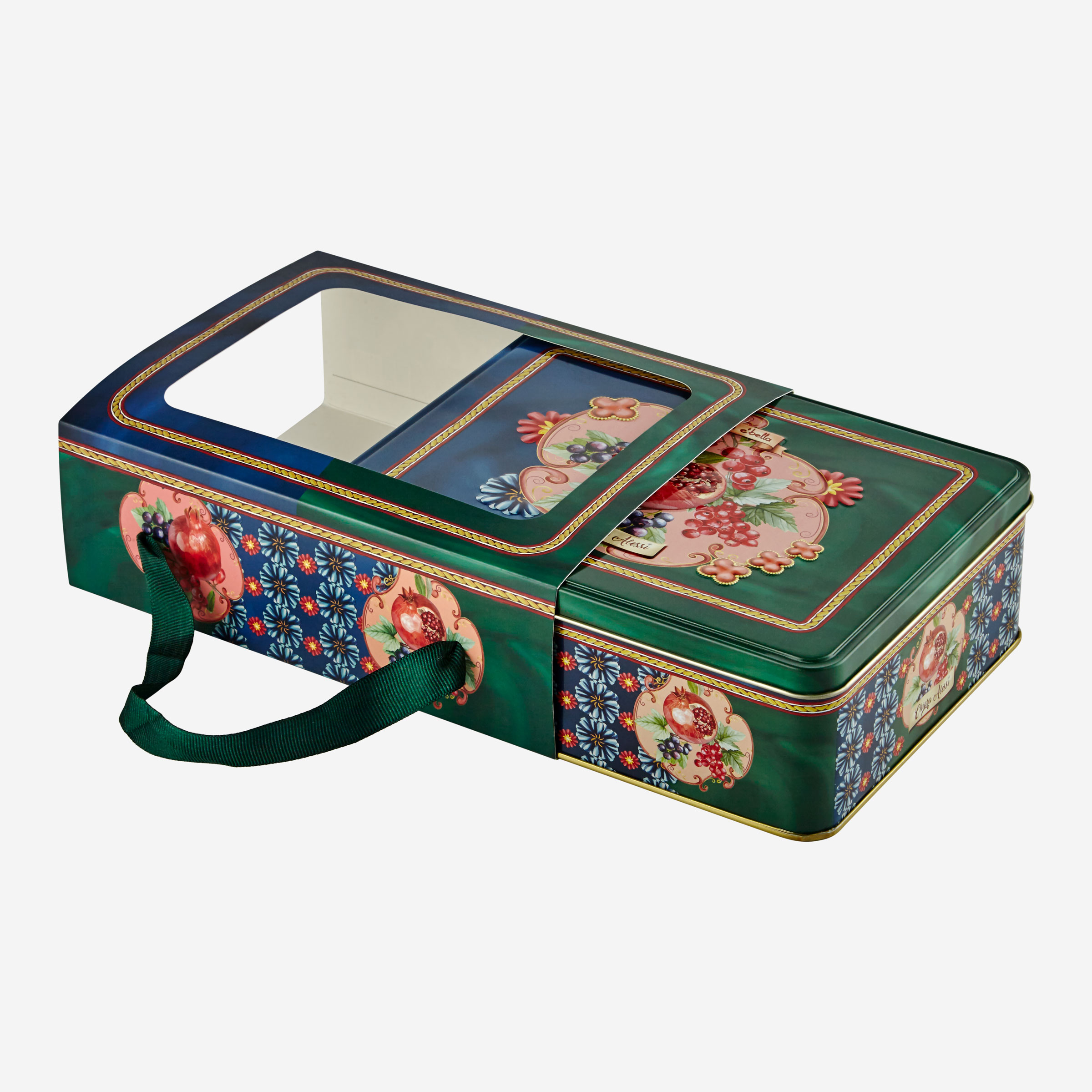 Chiara Alessi Capri Metal Kutulu Türk Kahvesi Fincan seti, mavi ve yeşilin göz alıcı uyumu üzerine nar simgesiyle dikkatleri üzerine çekiyor. Binlerce yıldan beri birçok kültürde Nar, bolluk ve bereket simgesi olarak kullanılmıştır.Capri Türk Kahvesi Fincanını tasarlanırken, sofralarınıza bolluk ve bereket getirmesi amaçlanmıştır. İkili fincan seti, şık metal kutusuyla sevdiklerinizi mutlu edecek harika bir hediye seçeneğidir.