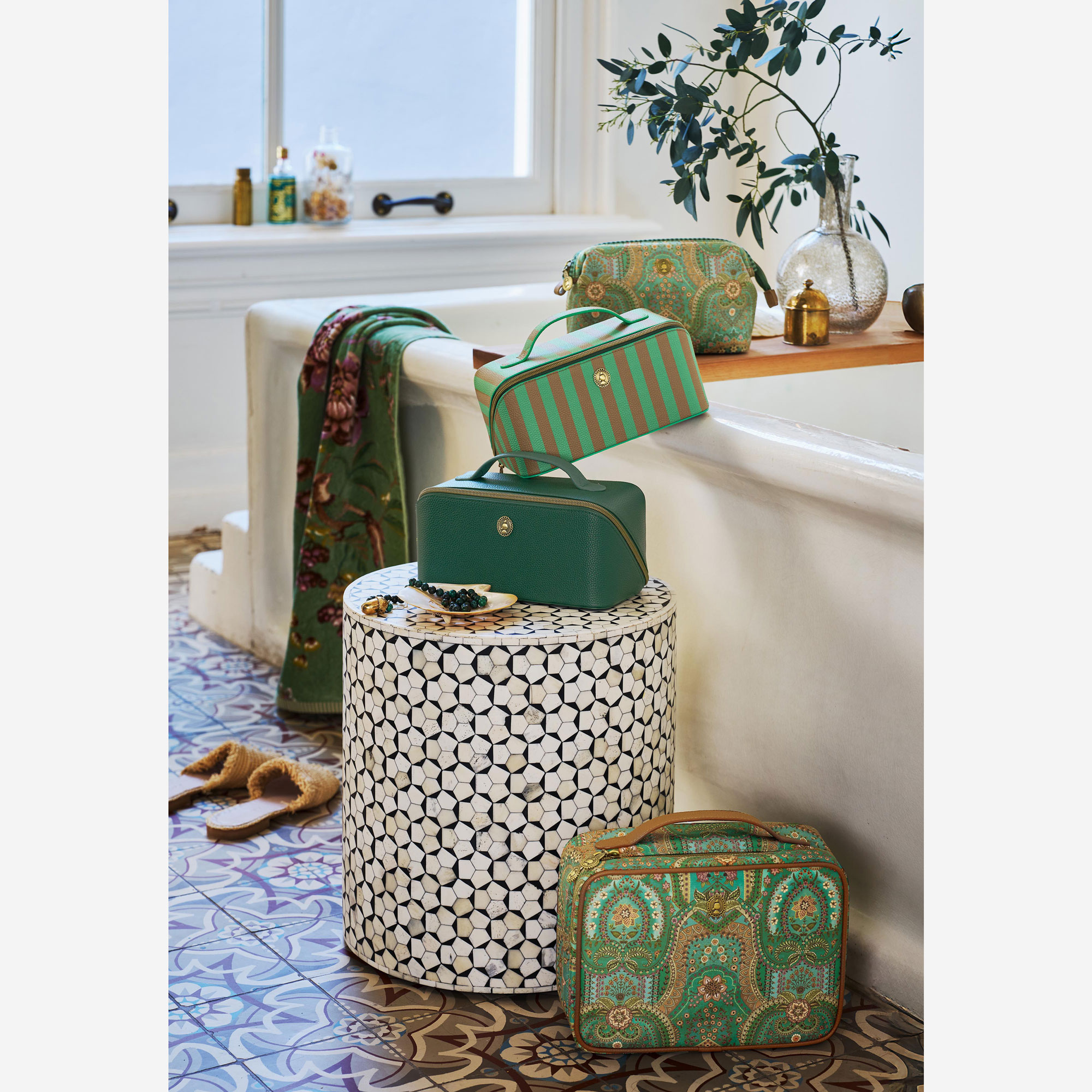 Yeşil Kadife Makyaj Çantası 26X7,5x18 Cm Jabali Collection by Pip Studio
