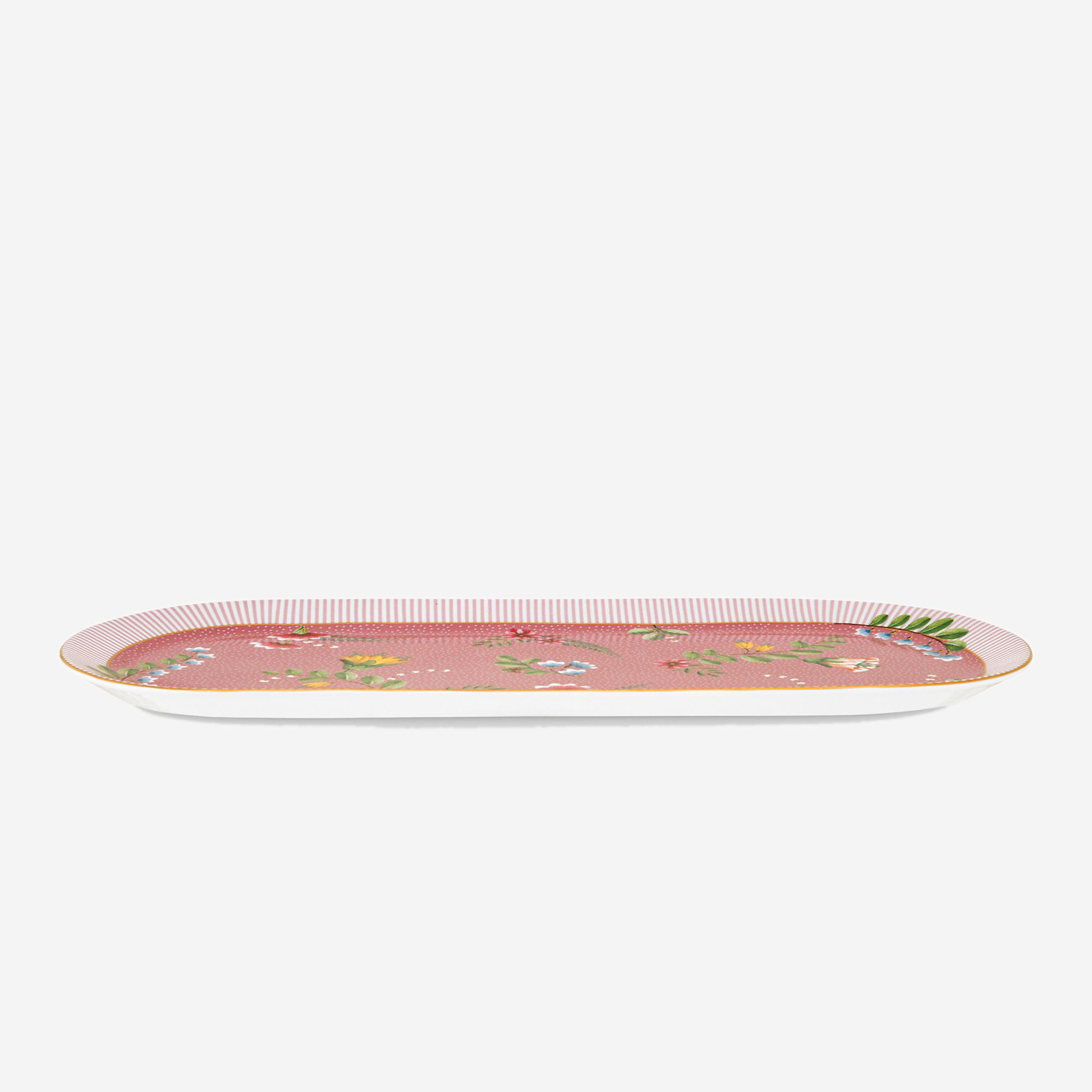 Pip Studio La Majorelle koleksiyonun vazgeçilmez parçalarından olan pembe oval servis, sunumlarınızı görsel bir şölene çeviriyor. Lüks tasarımlı sofralarla hem kendinizi hem misafirlerinizi şımartın. Pip Studio porselen ürünler, çizilmeyen yapısı ile uzun yıllar kullanılabilirliği gözler önüne seriyor.