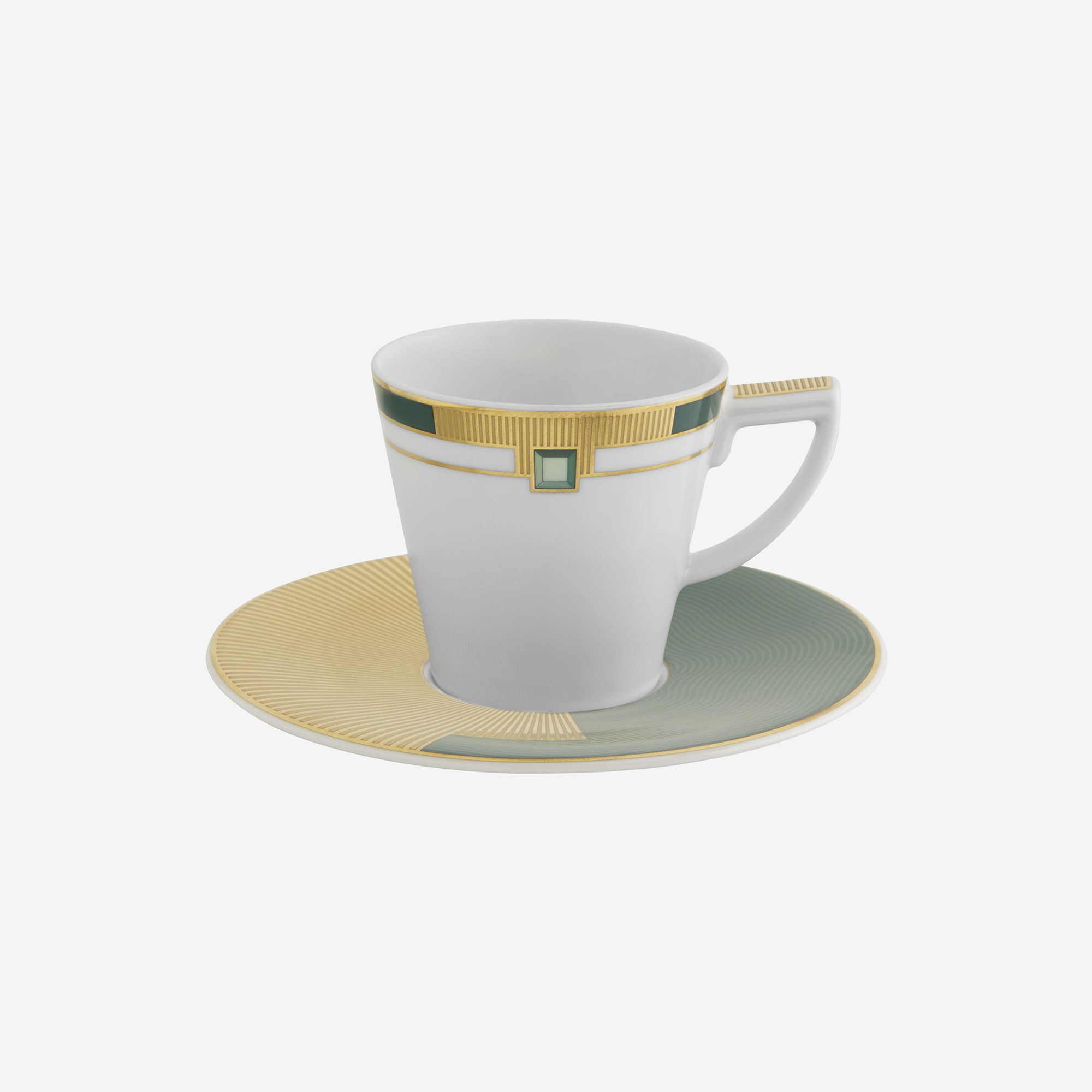 Yeşil Kahve Fincanı ve Tabağı Materyal: Porselen Yükseklik: 60 mm Uzunluk: 125 mm Kapasite: 95 ml Paketsiz Ağırlık: 204 gr Kullanım Talimatı: Mikrodalga fırınlar için uygun değildir. Elde yıkama için uygundur. VISTA ALEGRE